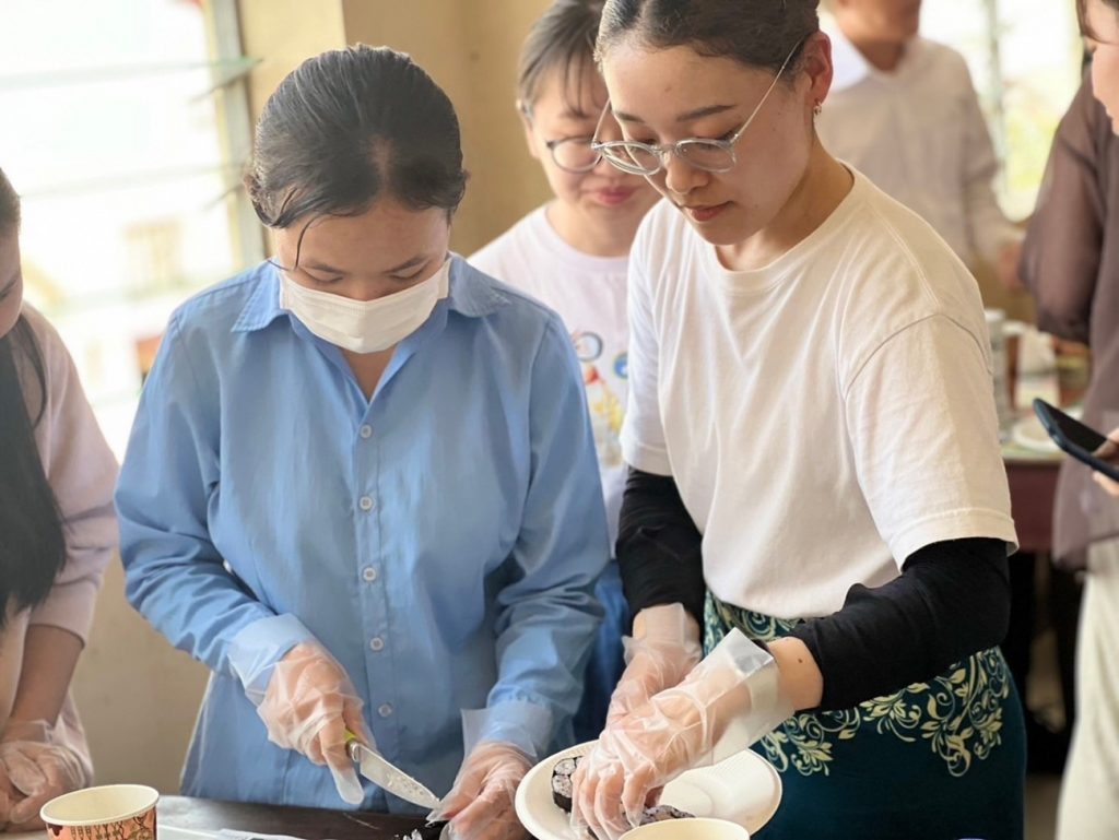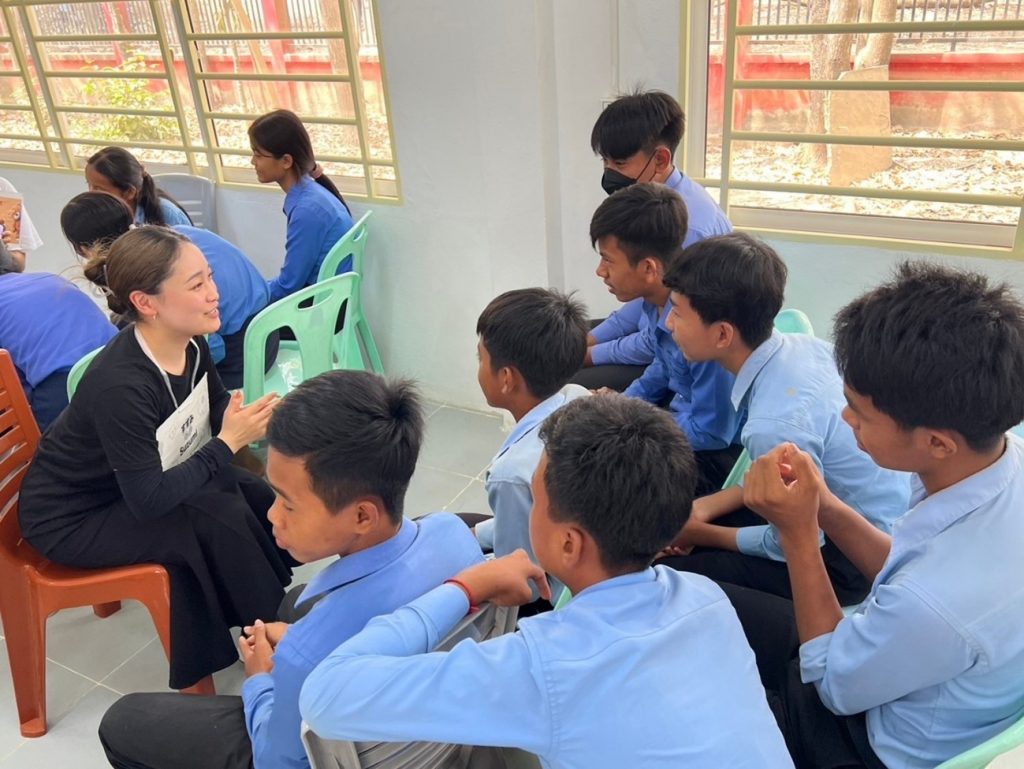 日本語パートナーズの短期派遣プログラムでカンボジアに1週間行ってきました。おそらく多くの日本人にとってカンボジアは馴染みのない国のように思います。私もカンボジアについて未知でかなり不安もありつつもどんな国なのか興味もあり応募しました。現地では日本のアニメやご飯といった文化についてのお話をしたり、飾りずしを一緒に作ったりと日本文化の紹介を行いました。私は飾りずし紹介の担当をしたのですが、学生と協力して飾りずしを作るという日本でも経験できないことをさせていただきました。プレイベンにある学校では通訳さんを介しながらジェスチャーで会話をするという言語が通じない環境にも会い、プレイベンに関わらず全てが貴重な経験となりました。プライベートの時間でも現地をたくさん観光し、1日1日が濃い1週間を過ごさせていただきました。