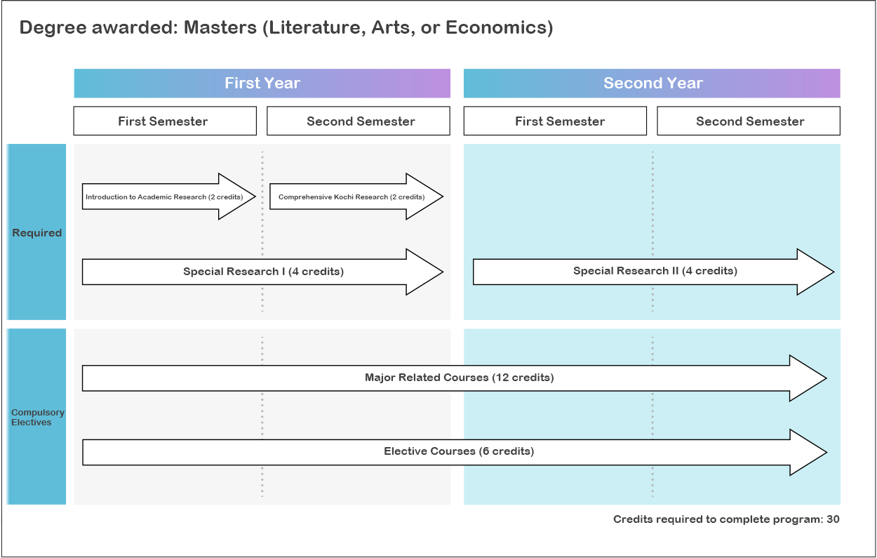 There are required core subjects unique to this graduate major, Introduction to Academic Research and Comprehensive Kochi Research, both of which combine humanities and social sciences research traditions.